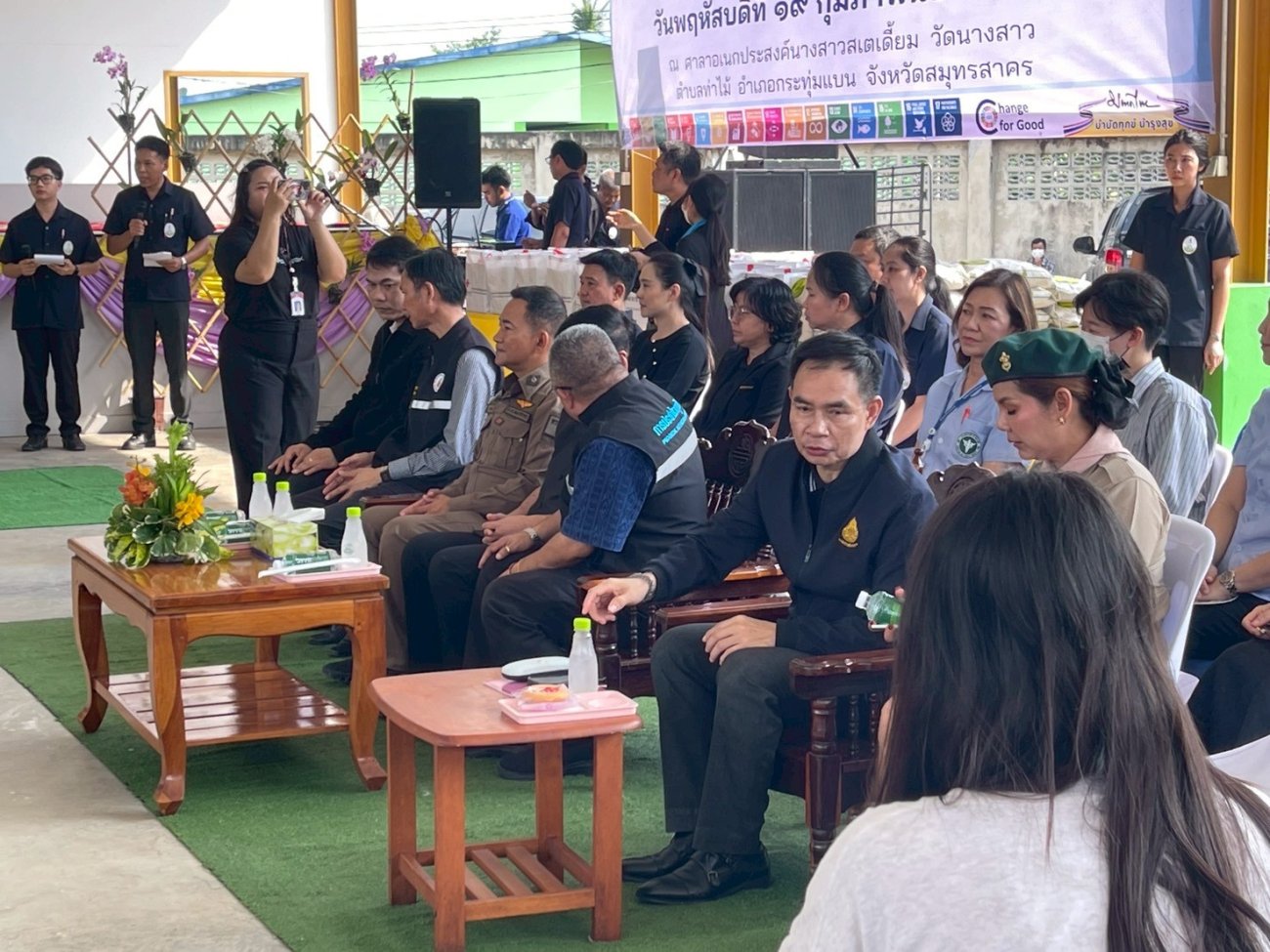 งานนี้ได้รับเกียรติจาก ท่านอำนาจ เจริญศรี ผู้ว่าราชการจังหวัดสมุทรสาคร เดินทางมาเป็นประธานในพิธีเปิด พร้อมด้วย ท่านนายพิรุณโรจน์ นาคดนตรี นายอำเภอกระทุ่มแบน และ หัวหน้าส่วนราชการระดับจังหวัด และผู้นำท้องถิ่น กำนันมานิตย์ มาพิทักษ์ กำนันตำบลท่าไม้ ประธานสภาฯ และสมาชิกสภาองค์การบริหารส่วนตำบลท่าไม้ ท่านปลัดชิดชนก กวางเส็ง ปลัดองค์การบริหารส่วนตำบลท่าไม้ ที่มาร่วมพบปะพูดคุย รับฟังปัญหา และเติมกำลังใจให้พี่น้องเกษตรกรในโครงการ "ผู้ว่า...คลายทุกข์ มอบความสุขให้ประชาชน"